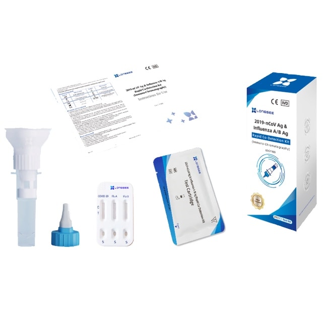 2019-nCoV Ag & Influenza A/B Ag Rapid Co-Detection Kit(Immuno-Chromatography)is an immunochro-matographic assay for the rapid, qualitative detection of influenza A/B antigen and novel coronaviruses (2019-nCoV) antigen extracted from the saliva specimen. The test is to be used as an aid in the diagnosis of influenza A/B and coronavirus infection disease (COVID-19). The test provides preliminary test results. Negative results cannot exclude influenza A/B and 2019-nCoV infection and they cannot be used as the sole basis for treatment or other management decisions. For in vitro diagnostic use only. For professional use only.