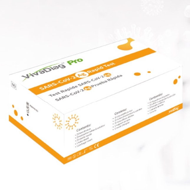 VivaDiag™ Pro SARS-CoV-2 Ag Rapid Test is for the rapid, qualitative detection of the nucleocapsid protein antigen from SARS-CoV-2 in human nasal swab, oropharyngeal swab specimen. The test is for in vitro diagnostic use only.